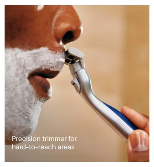 - Precision trimmer (the blue strip found on the back of every blade cartridge) to tackle sideburns and hard-to-reach spots
