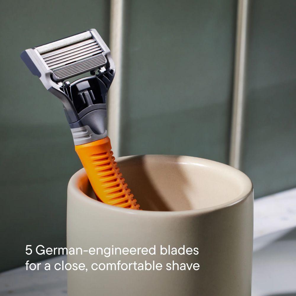 If you're just embarking upon your Harry's expedition. look no further! This 5 Blade Starter Set features the Truman Handle and 5 german-engineered Razor Blades - quite simply everything you need to take your shaving game to new heights. Harry's Truman Razor Handle has been ergonomically engineered to maximise comfort and flex around every contour to ensure a clean. close shave.